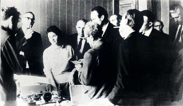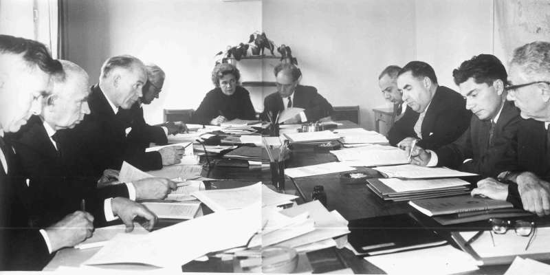 Заседание Национального комитета по проведению МГГ. Второй справа - Н.В. Пушков, в центре - В.А. Троицкая